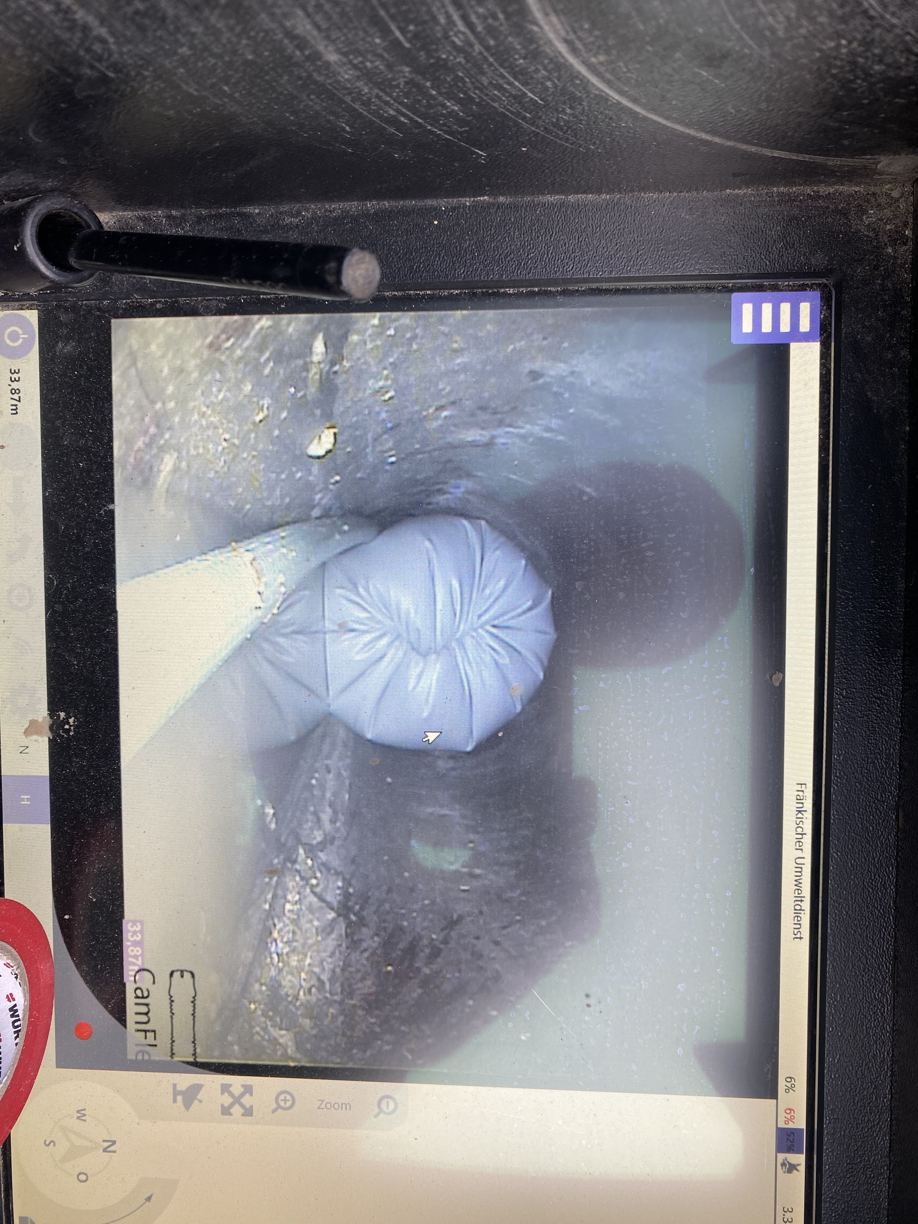 70 Meter unter dem Bahnhof entlang, verläuft eine Abwasserleitung. Die hat unter den Gleisen nicht zugängliche Schächte, deren Böden 30cm tiefer liegen, als die Rohrhöhe ist und zudem Einlauf und Auslauf nicht in einer Flucht liegen. So mussten wir zuerst Saugschläuche einziehen und die Schächte reinigen und aussaugen. Dann wurden Beton-verpresschläuche bis in die Schächte gezogen und als Formgebung für den Beton ein "Vorschlauch" eingeschossen und aufgeblasen. Injektionsbeton wurde in die Schächte gepumpt und ausgehärtet. Eine ganze Reihe von Versuchen zeigte, daß ein Einzug eines Inliners nicht möglich wäre und die Aushärtung mit Licht ebenfalls nicht, da durch die Schachtversätze, das Inlinermaterial sich an den Kanten aufgerieben hätte. Also fiel die Wahl auf einen vor Ort getränkten Inliner mit insgesamt 420Kilogramm, der im gezogenen Inversionsverfahren eingebaut wurde. Das außergewöhnlich hohe Gewicht des Inliner, wird durch die Wandstärke bedingt, die aufgrund der statischen Gegebenheiten und der Tiefe von bis zu 5 Metern bedingt ist.