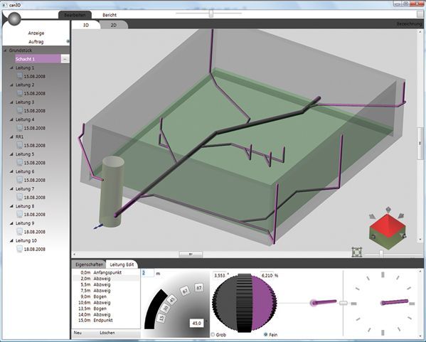 Kameratechnik die sich merkt wie sie sich im Kanal bewegt und dabei ein Bewegungsprofil erstellt, erlaubt es ein 2/3D Abbild, sogar mit Höhen, des Kanalnetzes unter dem Gebäude zu erstellen. Die Gebäudegrundrisse haben wir bei Beauftragung mit dabei.